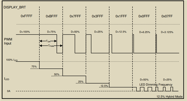 但我们测试时,写2047时和65535一样的亮度。写2048时息屏了。感觉是非线性的变化,请问这个问题是什么导致的?