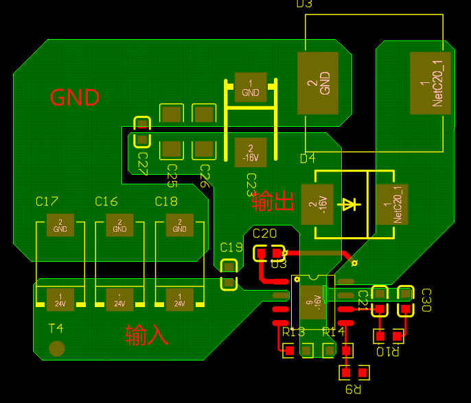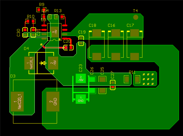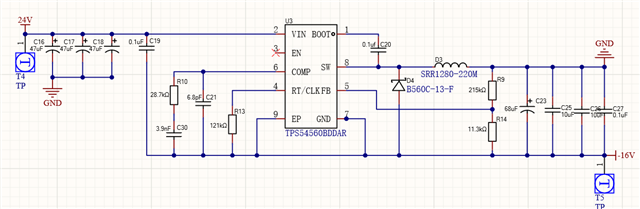 输入24V,输出-16V@2A,开关频率800k 能否帮忙审查一下layout和原理设计是否正确,如图: