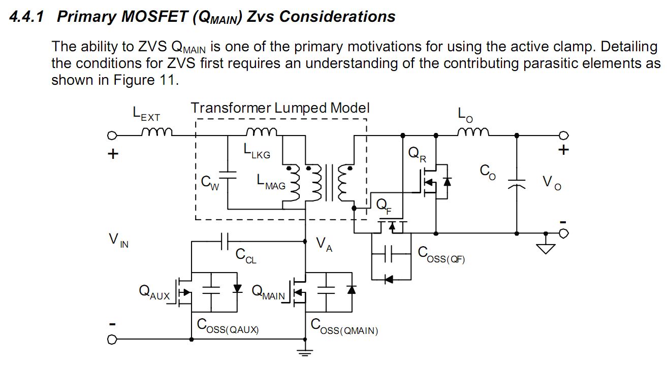 在SLUA303 文档中,说到有源钳位正激参数计算的问题,疑惑下图中的Cw是什么?怎么测量?如果我的次级使用二极管输出,Coss(QF)是零吗?