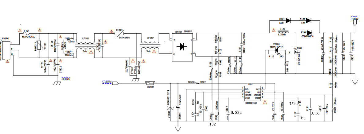 用UCC28019 做的350W/390V PFC 为什么当负载加到270W时,由重载变为空载时,会发出"susu"的响声