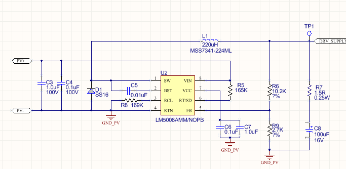 你好,我目前使用了芯片LM5008AMM芯片来接收30-45V范围直流电压输入,想得到输出电压为12V,我参考了参考设计,RFB1=2.7K。RFB2=10.2K,可是输出的电压大约只有3V左右,而且FB引脚输出的电压不是数据手册里提出来的2.5V,而是0.6V。希望哪位知道的朋友联系我一下,我的邮箱是zhousiyang1991@163.com.谢谢!