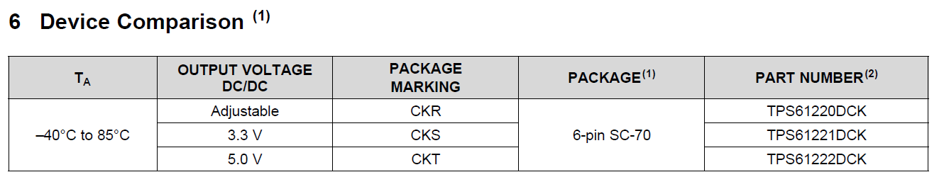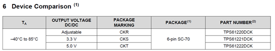 最近有一个项目是锂电池输入,5v输出,输出电流100ma左右,准备使用TPS61222。资料介绍TPS61222有两种方式,一种是固定输出的,一种是可调的,如何区分?其次。我的需求是否可以达到?