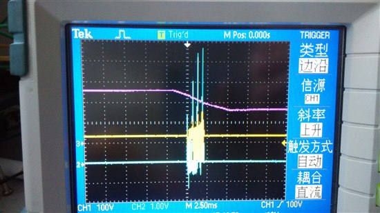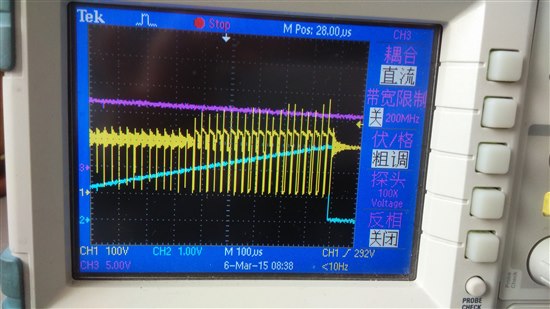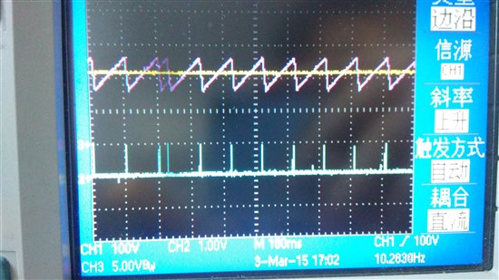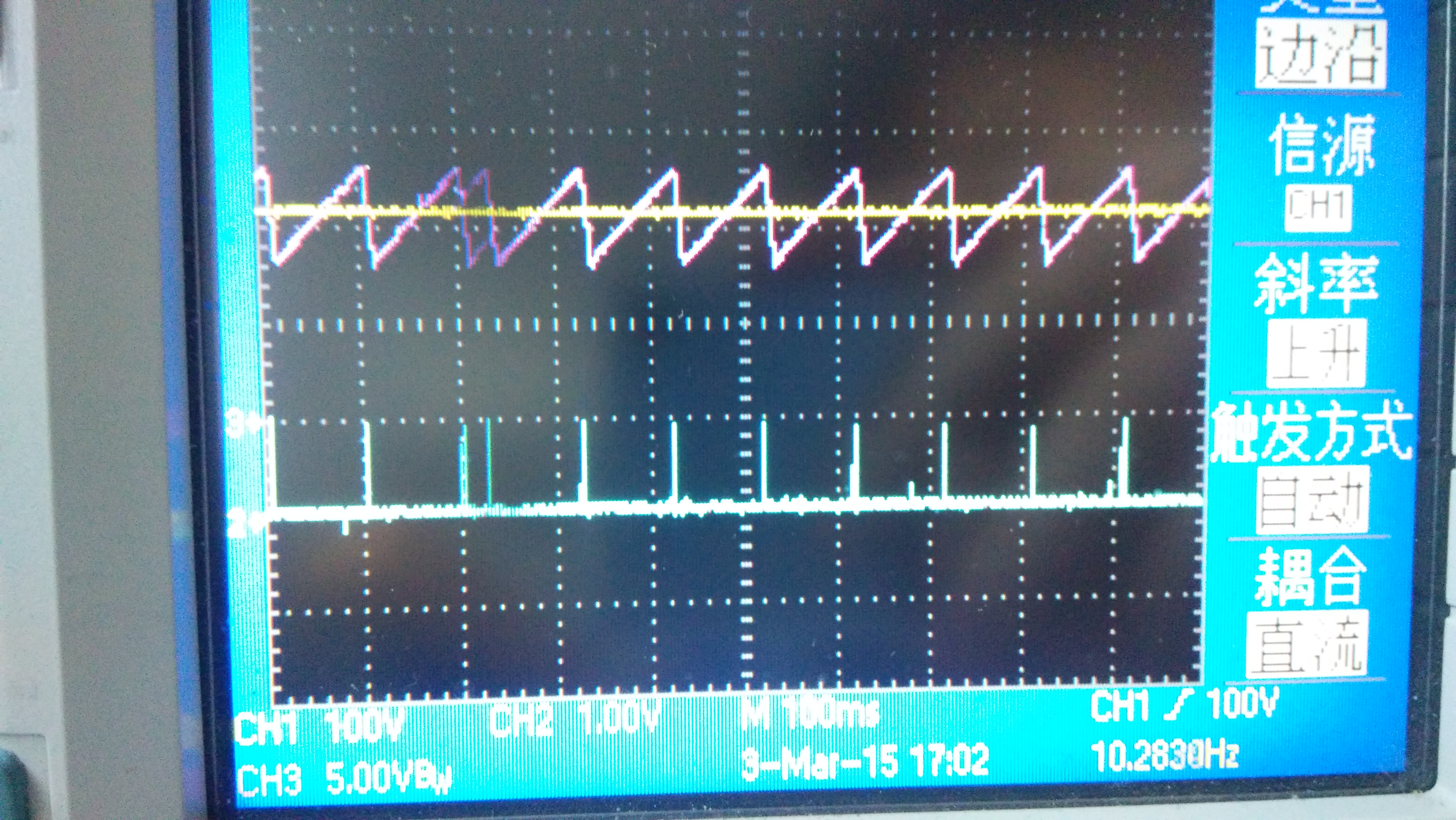 粉红色是从电解母线取电的电解波形,是个8~13V不停震荡的锯齿波