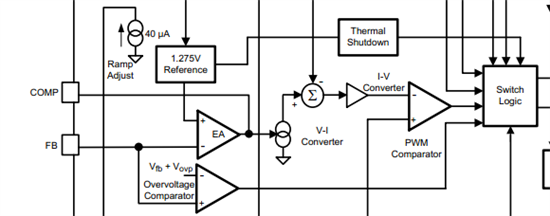 根据数据表给的内部结构,其反馈控制电压环等效电路如下图