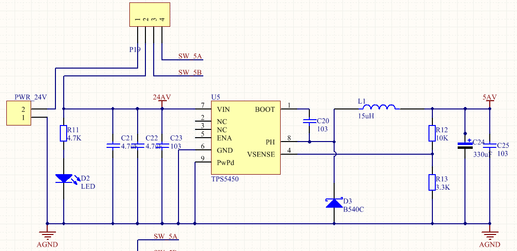 在用TPS5450做5V输出的时候,焊接了5块板子,烧了四块,有一块正常,求教