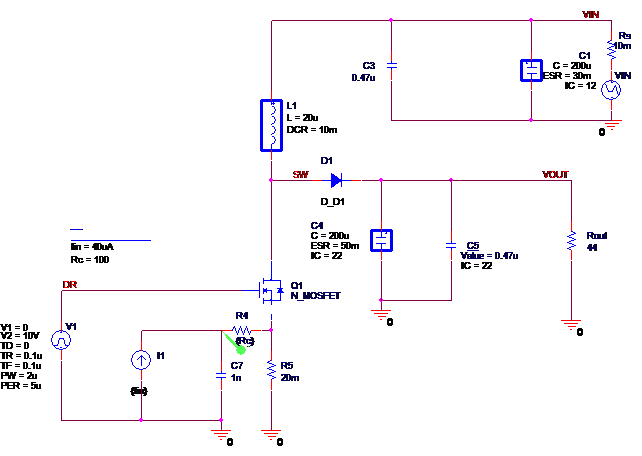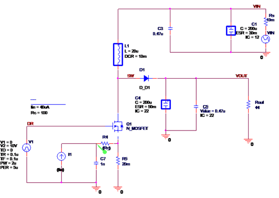 根据芯片斜坡补偿内电路用开环的boost电路作了下仿真分析