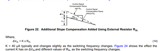 LM3481数据表上给的外接电阻调整斜坡补偿电压大小计算如下