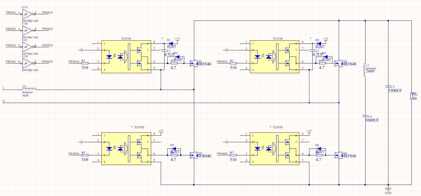 请问有人使用TMS320F28XX做过单相PWM整流呢?我开环的将SPWM加在四个mosFET上,但是输入电流还是像二极管整流一样是脉冲波形,并且第1/4个mos非常热,请问可能是什么情况呢