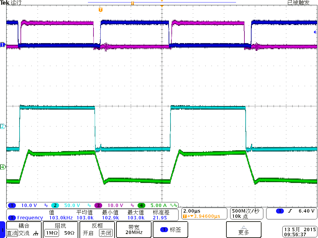 超前桥臂下管驱动,通道3是超前桥臂上管驱动,通道2是桥臂中点电压,通道4是谐振电感电流。麻烦各位帮忙看看,非常感谢。