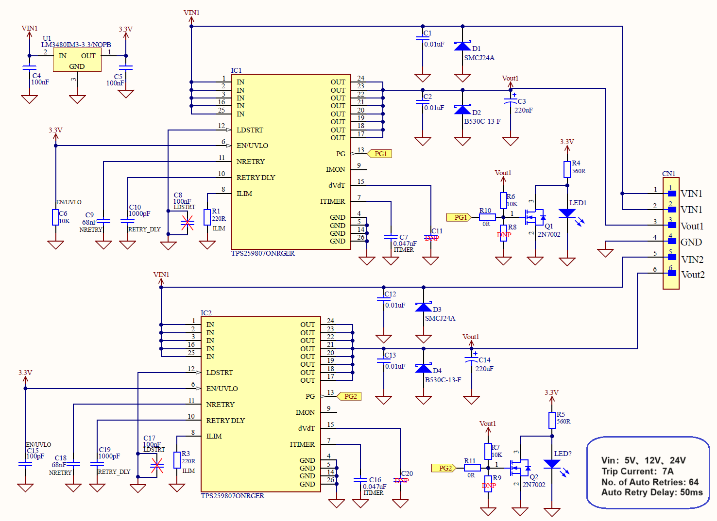 在量產中,使用於24V的E-FUSE在電源啟動時發生突入電流而跳脫,之後重試功能(RETRY)無法正常運作,無法恢復。