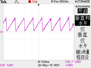 正常为 恒定电压。但是我的 为 锯齿波。请教 大神 是 哪里出了问题导致的。
