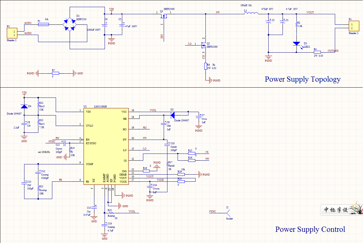 请教各位大神,之前的不工作问题怀疑参数不对,因为电路检查过了,于是使用WEBENCH 重新设计了电路,导出参数如图,根据实验室实际情况有调整,图中橙色字体为实际焊接的数值,由于我的软件导出PDF时无法显示中文,图中输入为整流桥KBP2510的输出,大概56V左右,输入滤波电容多了一个1UF,输出滤波电容多了一个470UF,电感是100UH 环形铁硅铝,电流采样电阻是0.01欧 绕线电阻,3W,VCCX接地。