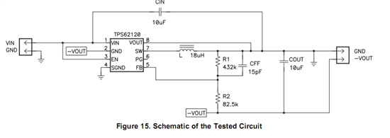 TI专家你们好,我想通过TPS62120稳压芯片将5V电压变成-5V,测试电路是按照TPS62120手册的经典参数搭建的。其中芯片采用直流电源供电,测试结果发现直流电源的输出电压被拉低而且不稳定,电流输出为0A(输出一直在变动,我只取了其中的三张)。我用万用表测得-Vout= -1.3V左右,这个到底是什么原因?