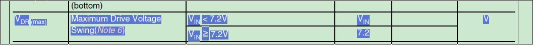 见datasheet : www.ti.com.cn/.../lm3478.pdf 第八页,驱动电压定义:The voltage on the drive pin, VDR is equal to the input voltage when input voltage is less than 7.2V. VDR is equal to 7.2V when the input voltage is greater than or equal to 7.2V. 也就是是说驱动电压的大小与Vin的大小相关。