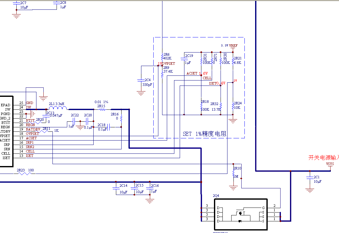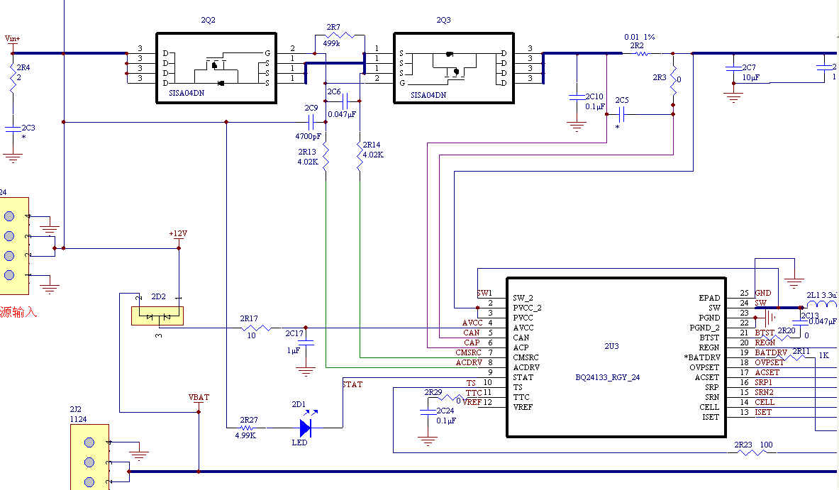 IC SW脚电压波形也正常.电路为推荐bq24133手册电路.Q1Q2用sisa04N.