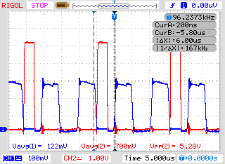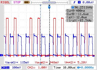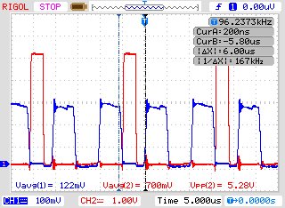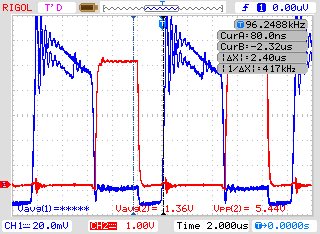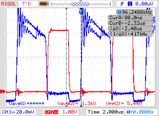 首先,假如我的副边负载电阻比较小的话那么它的驱动波形和管子DS波形如下