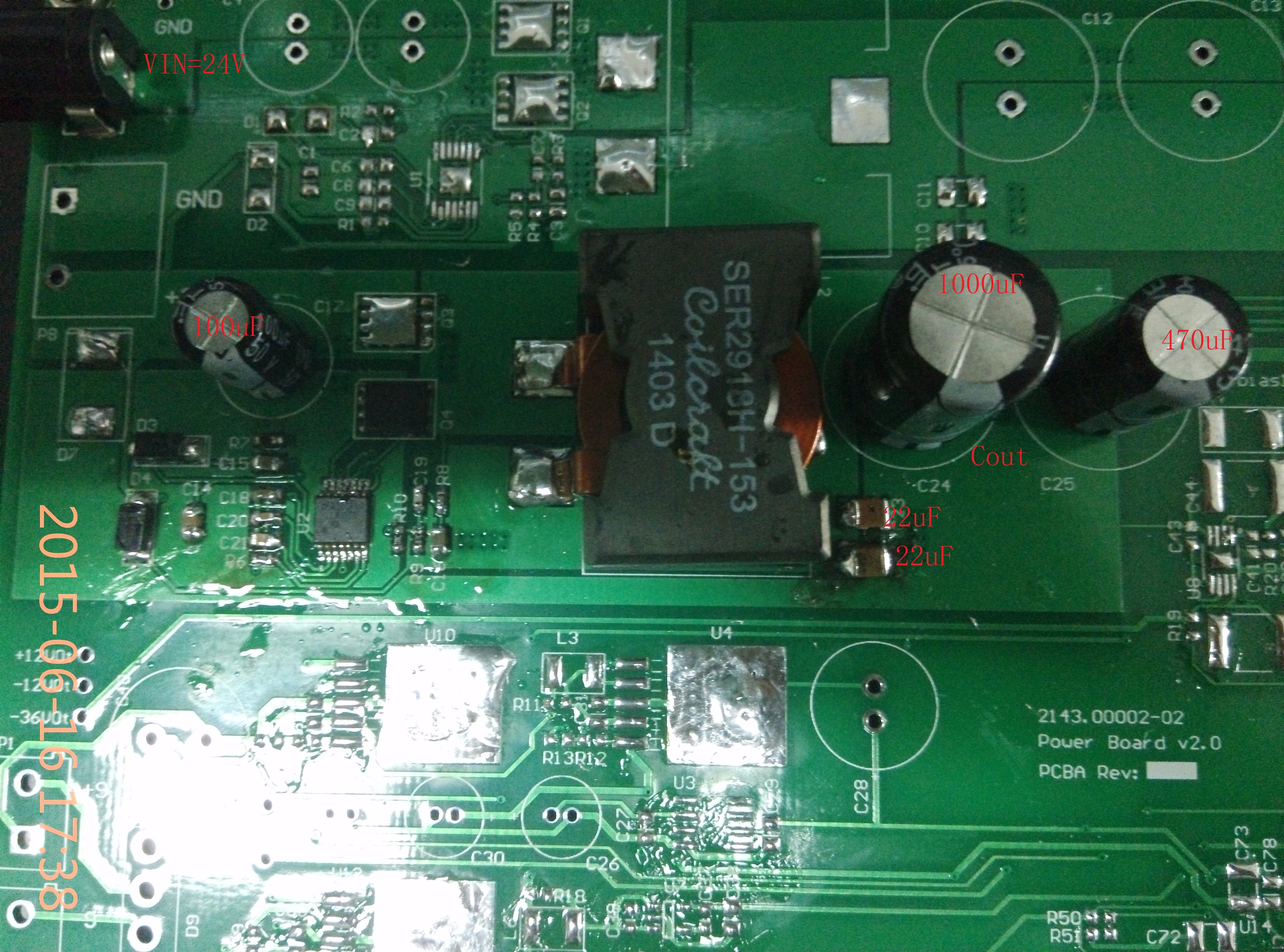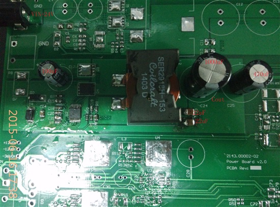 上次发贴问过关于输出纹波大的问题,重新按照TI的测试板规划布板后,现在测试输出峰峰值是40~50mV,可以达到要求。