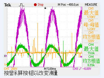 附件里面是电路图,电容用的是6个470uF的电容并联,也就是2720uF,空载的时候输出电压346V,带个几百W的负载之后输出电压就降到220V左右了,不知道是什么原因,做出来的电流波形感觉还可以。