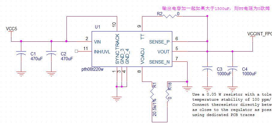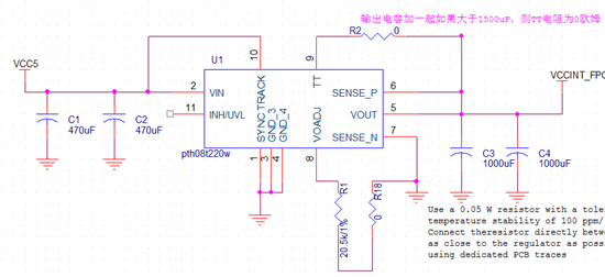 项目中使用了5个pth08t220模块并联来给一个FPGA板供电,调试时焊接了一个PTH08T220模块,发现有严重的电感啸叫问题,并没有带负载,而且纹波比较大,大概有150mv,增加Rtt的阻值有所改善,但电感依然啸叫,求助大家这是什么问题??谢谢~~
