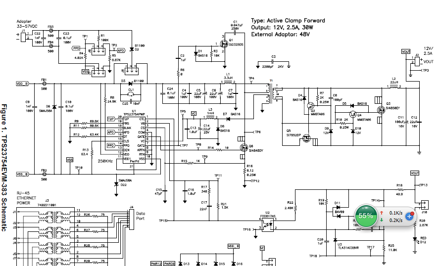 控制IC是TPS23754。。。。抄TI官网TPS23754EVM-383,输入36-72V,变压器匝数比17:12:12,输出15V。希望TI给个解决方案官网,