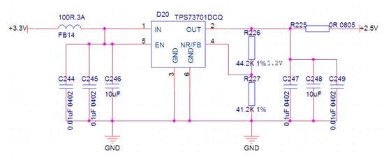 (1)断开R255的0欧电阻,在空载的情况下,Vout = 1.5V左右,FB的电压为0.8V。更换R226,R227使其输出1.2V,1.8V均正常。