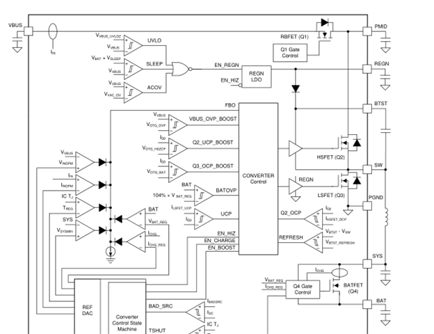 有概率会出现自举电路部分损坏现象,测量REGN到BTST之间电阻只有50Ω左右(很小)。具体表现就是不接负载,没有功耗的时候芯片还是会发热,导致待机时电池电量耗尽。