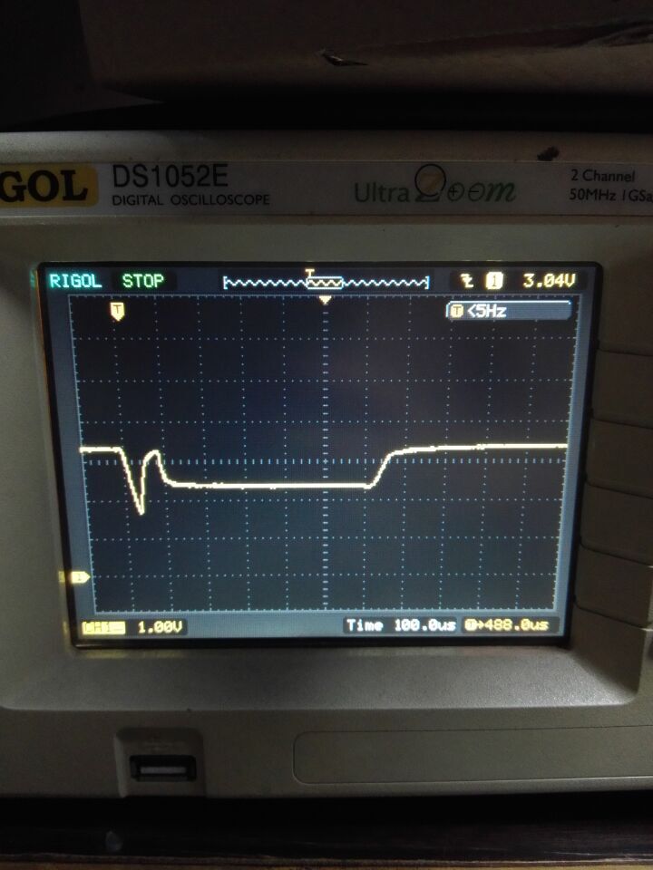 3.增加输出电容,输出电容在GSM电源端有一个220uF的钽电容,尝试增加一个220uF的电容,问题有点改善但不理想,输入电压跌落到2V左右