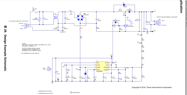 Input 220VAV voltage, drive the motor 800W output. the frequency of UCC28180 is set to 60K, the 310VDC will be rectified to 380VDC, the topology used is consistent with the datasheet, the device and resistor-capacitor values are individually modified!