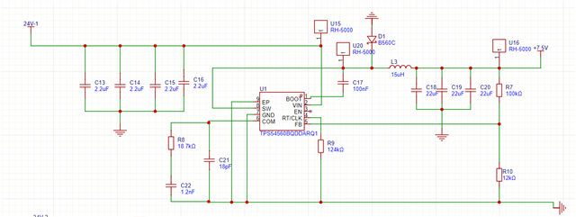尊敬的TI工程师你好,我基于TPS54560设计了一个降压电路