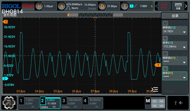 我设置的开关频率为800KHz,但是从SW波形图上看只有172KHz左右,请问这是为什么,而且为什么会产生这么大的振荡。