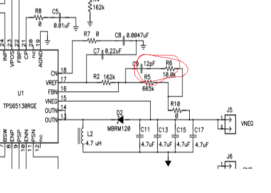 - 依据手册计算反馈环路等器件参数,5V输入,+15V/0.2A正常,-15V输出跳动-14~24V,但反馈电阻阻值计算合理。通过其他论坛查找,在C10串联51k电阻变好,请问是什么原因。