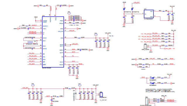 目前VBUS输入12V,原理图如下,监测VBAT电压为3.8V,插上电池未充电,且充电状态指示灯未亮,按照位置,PROG设置为6.04K为2S cell,输出充电电压应为8.4V,但板上万用表测试VBAT电压为3.8V,