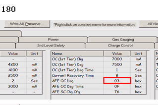我遇到一个问题,现在用以前一个BQ20Z75 1.81 版本的 程序,制作2S4P电池包,放电死活不能到5A,但是以前160 版本的程序就可以达到7A,我在1级保护中 放电过流已经 设到8A了,但是181版本的 就是放电不超过5A就保护了