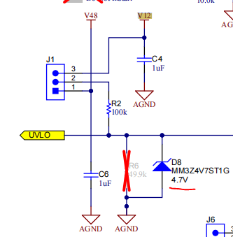 问题:降压电路48伏转12伏(DIR为5伏),输出正常。把样机改成升压电路(按照下图:DIR接地了、UVLO接到48伏这边,其他和降压的接法一样),12伏转48伏,上电前没有短路,输入12伏,上电后输入过流保护,输入被拉低到0伏。又改回降压电路,输出正常。