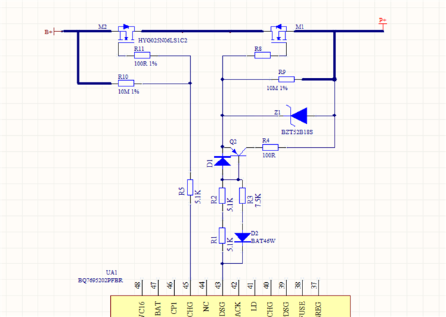 We use the high-side board for MOSFETs controlling,and the discharge mosfet and charge mosfet is in serial,when the CHG is off,and the DSG is on,and then connect a high voltage to the PACK+,the CP1 voltage will be affected,and then the charge mosfet is on,if the current is high,the charge mosfet will be damage.