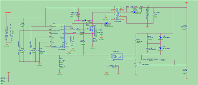 我们采用1颗LM5156来设计升压电路,输入是DC12/24V,期望输出是DC 48V/1A.。但按TI参考设计做出的电路板子(见下图),实际上只能达到31V左右,请问我们设计哪里有问题,该如何优化该设计?