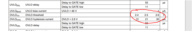 并且芯片保护后降低输入电压到18V也不会自动复位,用万用表测试OVLO引脚电压发现分压值变为2.56V左右。