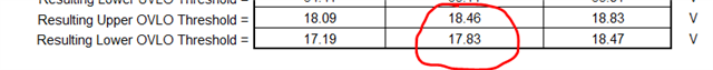 请教各位TI工程师,按照上图过压保护参数,过压保护理论值为18.45V左右。实际测试结果,输入电压18V可以正常输出,慢慢升高输入电压到18.2V左右时就被保护。