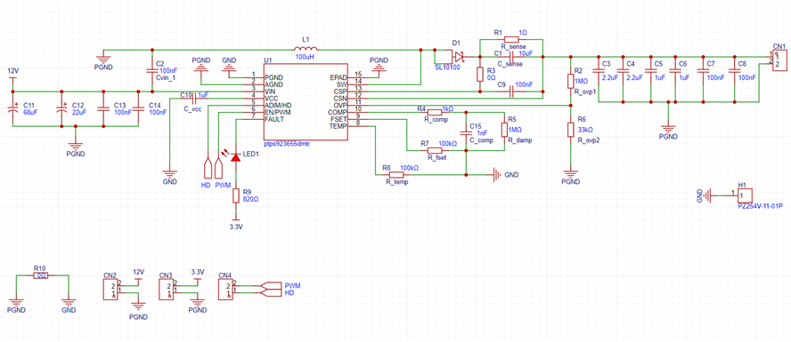 Why input 12V, but can not output 36V, is always the effect of step-down, and the Fault pin has been output low level