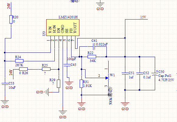为什么我的输入和输出是相等的呢?原理图是根据数据手册来的,原件的参数是不是连接EN的电阻有问题?下面附上原理图。电位器是备用的,怕没有这个阻值的电阻