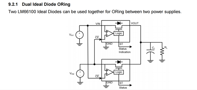 您好,这种应用可能会导致反向电流的一些不良行为,具体请参考这个帖子中的讨论,e2e.ti.com/.../lm66100-dual-ideal-diode-oring-for-continuous-output-power