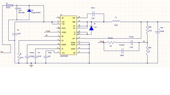 请教:下面这个电路,Vin小于26V,输出正常,当VIN超过28V后,Vout=1.3V;正常输出应该是4.2V左右。