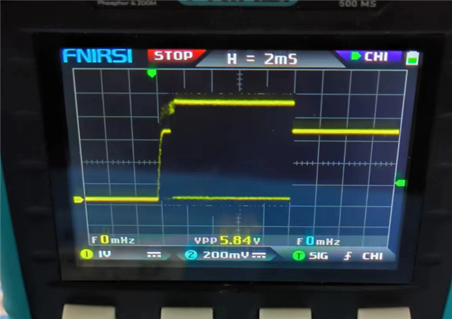 在保持上拉的情况下连接屏幕,测量SWP1电感处上电波形,在TPS65632启动10ms后停止开关此时,原本输出负压的OUTN处有10ms的电压上升,幅值约400mv
