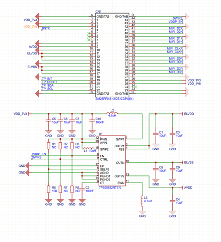 你好,我们在用TPS65632调试G1392FH101这款屏,具体架构如下图