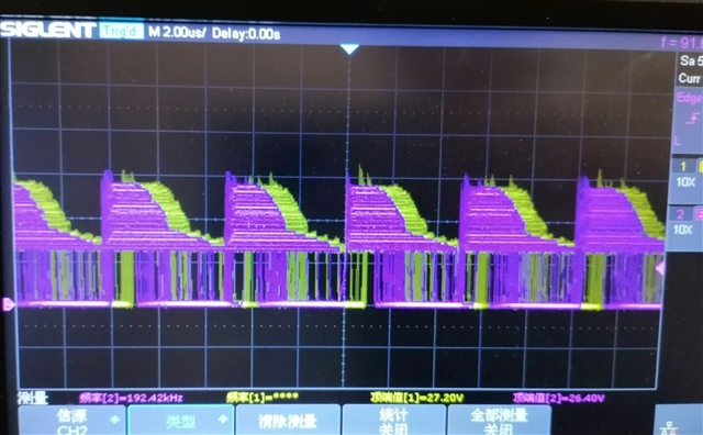 上图:黄色是栅极驱动波形,紫色是漏极波形。主从机波形基本一样。
