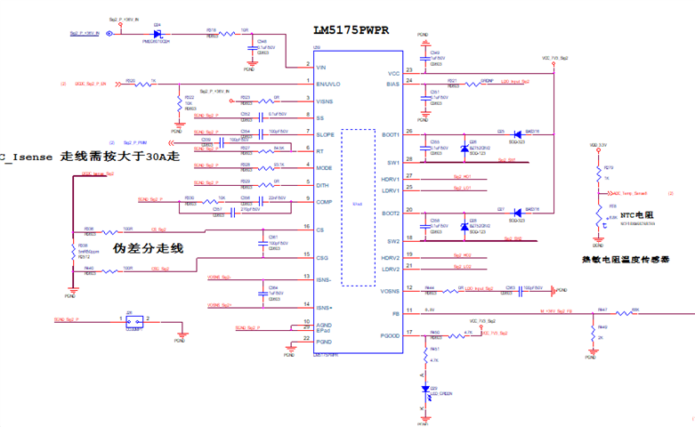我在调试LM5175时很容易损坏芯片。在输入40V,输出29V时,输出3A电流时监测到SW1的信号有很奇怪的抖动,实在不知道这个抖动是由于什么导致的。需要相应的帮助