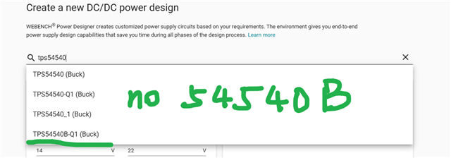 但是在WEBENCH中并没有54540B这个选项,只存在54540BQ1