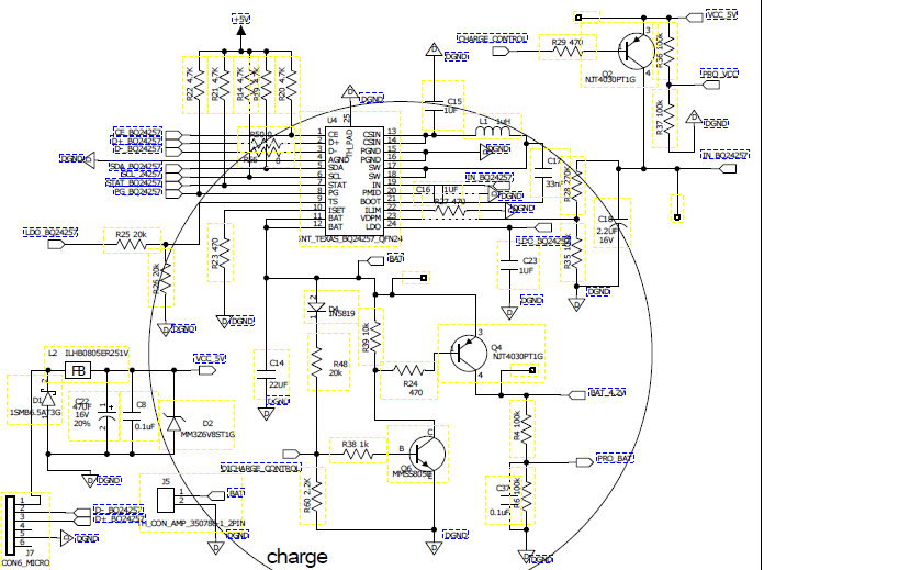 初次使用BQ24257, 打算直接硬件负责充电管理,不需要软件IIC控制.我想通过采集,7脚state 和 8脚 PG识别充电状态。充满是4.2v,电流控制在500mA 左右。麻烦帮忙看看原理图是否有问题。谢谢!
