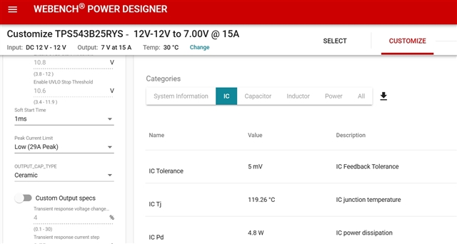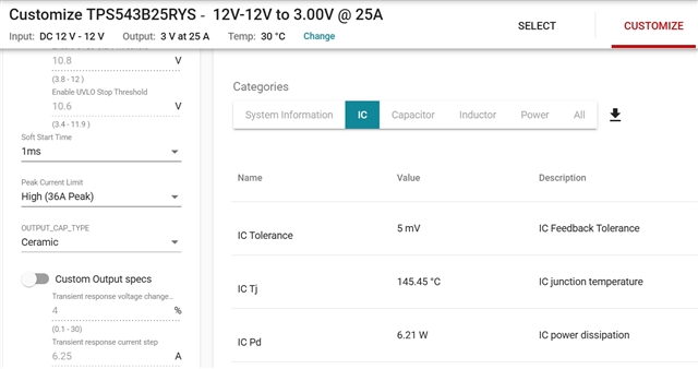 使用webench:12V至3V,25A,Tj=145C,Ta=30C,极限Tj=150C。