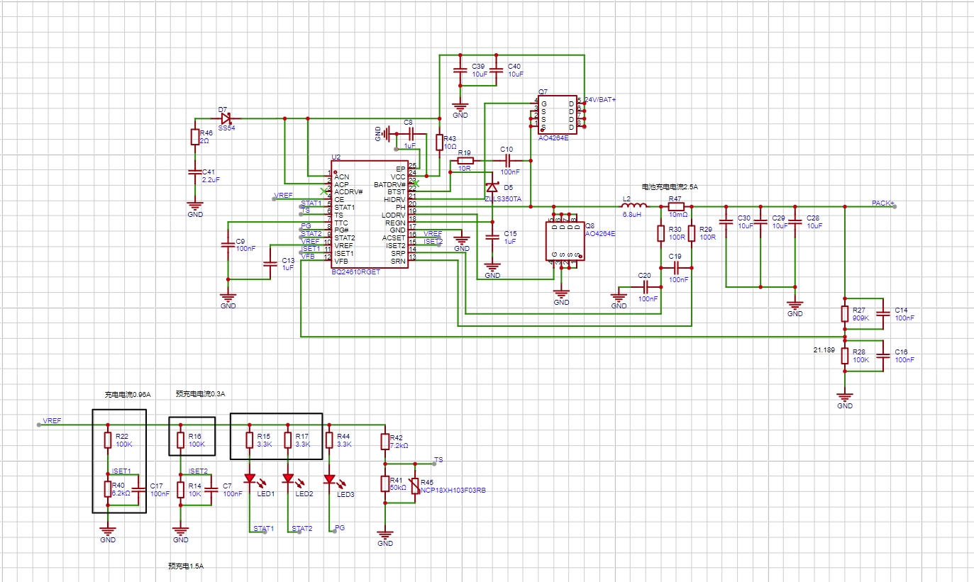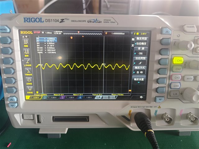 输入电压24V设置充电电压21.2V电流0.97A,上电未接电池时STAT1指示灯闪烁对应电压跳变,不应该没有电压输出吗?接上电池后充电电压也有很大的波动如图3。
